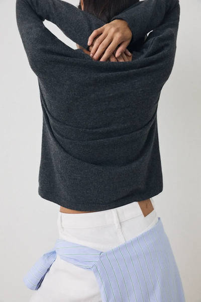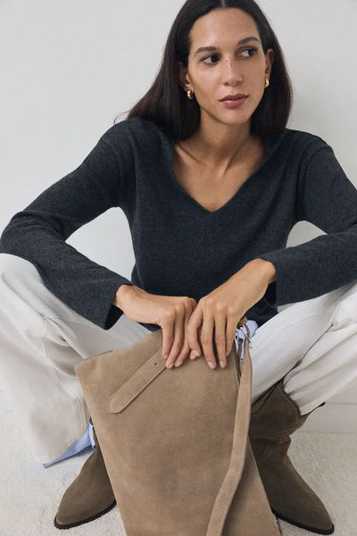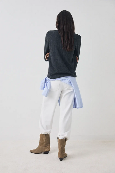 Basic trui in 12-gauge breisel. V-hals. Rechte, relaxte pasvorm. Wol-kasjmierstof. Lengte in maat S: 58 cm. Tailleert klein