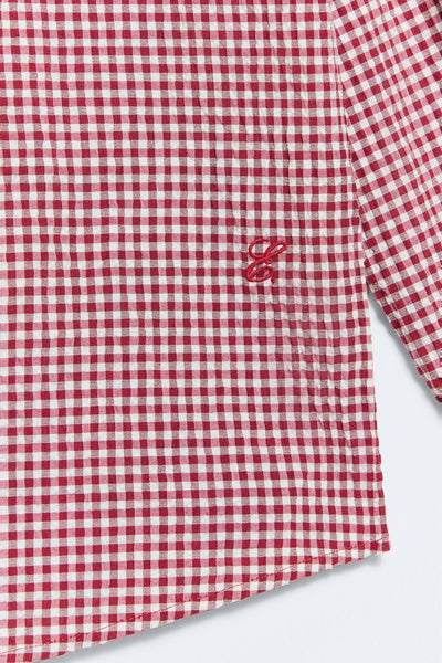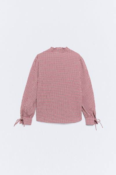 BCI katoenen overhemd in rood ruitmotief.- Kraag met ruchedetail.- Pofmouwen met strik aan de manchetten.- Sluiting met centrale knoop.- Lengte kledingstuk voor maat S: 61 cm.