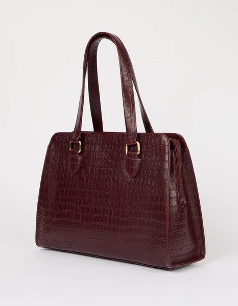 In Kersenrood Croco Print Leer is Blair een echte statement piece voor drukke werkdagen. Draag haar over je schouder of met de afneembare crossbody strap – veelzijdigheid is key. Binnenin vind je een gevoerd laptopvak, een sleutelclip, meerdere vakken én twee ruime hoofdcompartimenten voor je notitieboek, portemonnee, waterfles en meer. Blair is de stijlvolle work bag die moeiteloos met je meebeweegt.
