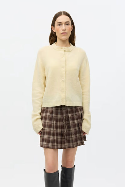 Relaxte cardigan met ronde hals. Zachte vezelmix met wol en alpaca, met een licht gemêleerde look. Ronde hals en knoopsluiting aan de voorkant. Geribbelde boord bij de hals, sluiting, manchetten en zoom. Relaxte, slouchy pasvorm.