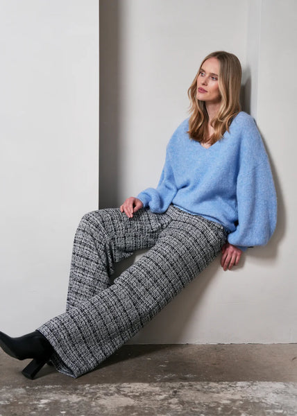 Deze gebreide trui is een subtiel statementstuk dat moeiteloos warmte en stijl combineert. Gemaakt van een luxueuze mix van wol, polyamide en wol-viscose met een vleugje stretch, biedt de trui een comfortabele pasvorm en een zachte touch. De diepe V-hals en licht ballonvormige mouwen zorgen voor een moderne, vrouwelijke uitstraling die perfect is voor dagelijks gebruik.