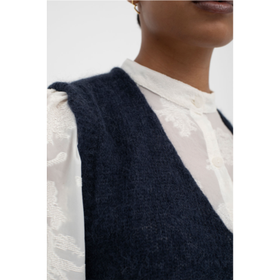 Effen gebreid vest met V-hals. Een veelzijdig en elegant all-over gebreid kledingstuk dat elke look compleet maakt.