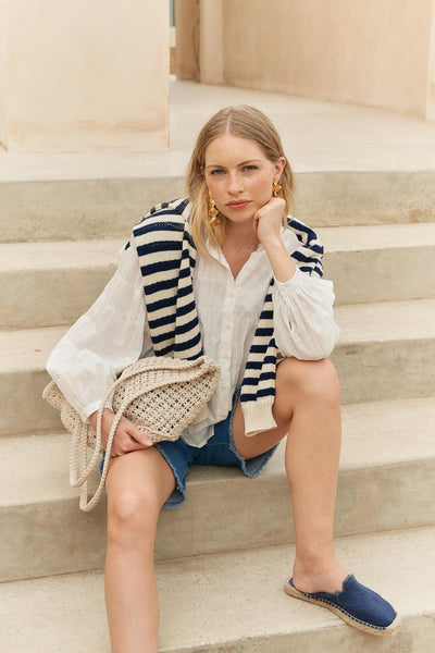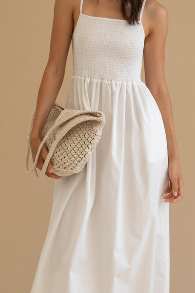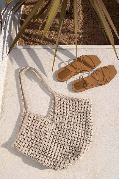 Tetiaroa is een grote katoenen tas met middelgrote handvatten van hetzelfde materiaal, ruitvormig met een ronde bodem. Hij zal je de hele zomer vergezellen.