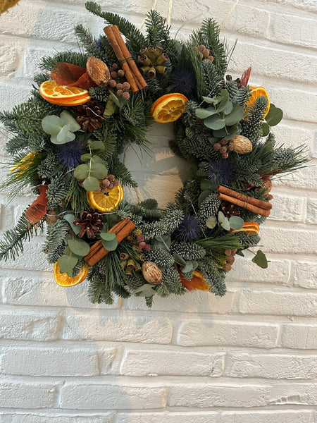 Maak je eigen kerstkrans vol geurend vers dennengroen, droogbloemen in feesttinten, glinsterende kerstballen en – als je wil – zelfs lichtjes voor die extra sparkle 💫